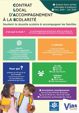 Pour soutenir la réussite scolaire et accompagner les familles, la municipalité de Vias met en place un dispositif d'accompagnement à la scolarité pour les élèves des écoles élémentaire et les collégiens.