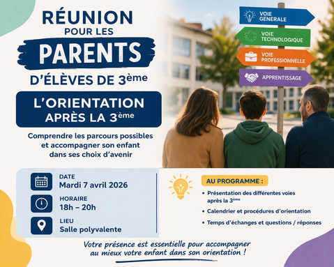 Réunion d'information pour les parents de 3ème - L'orientation